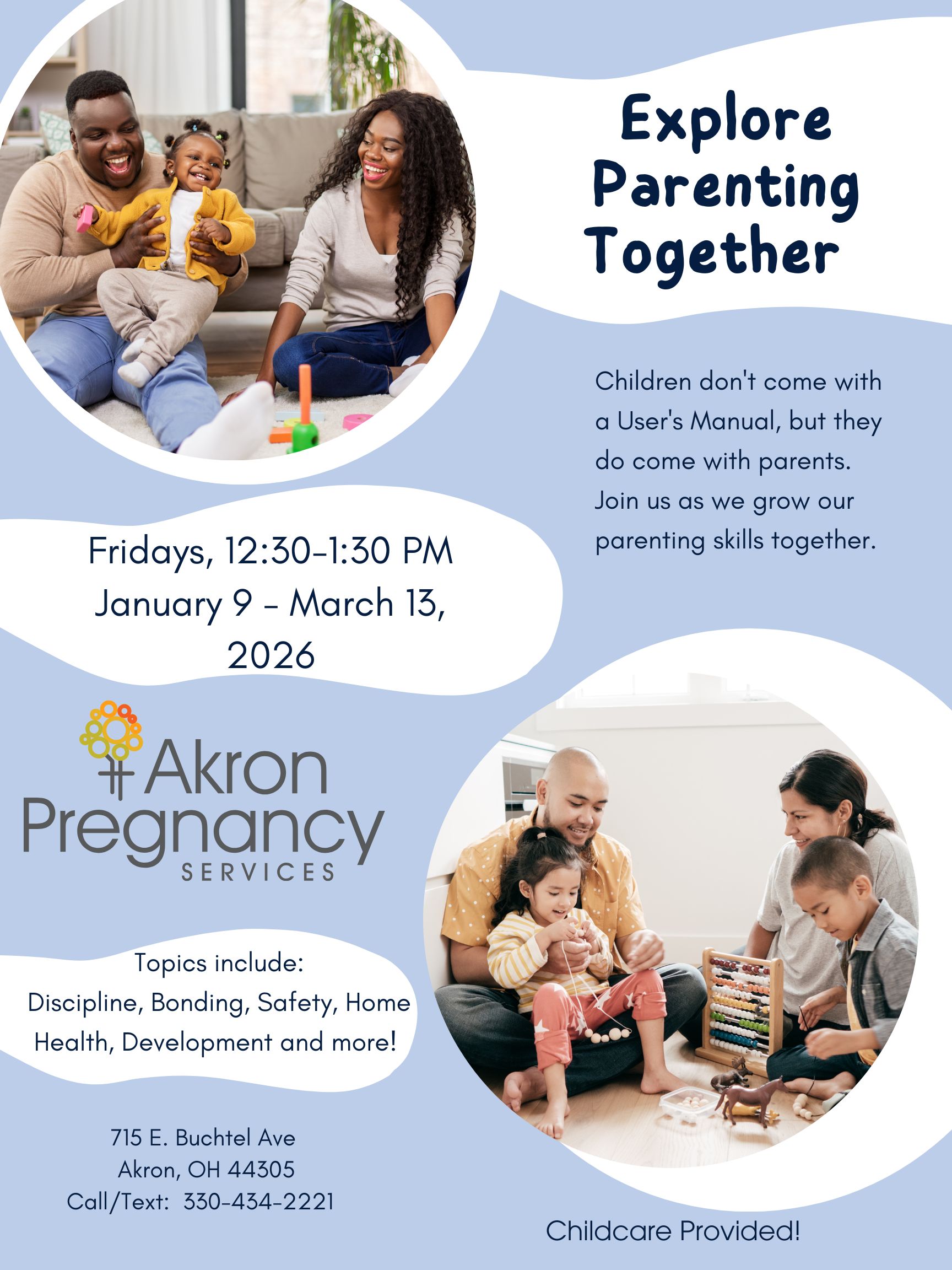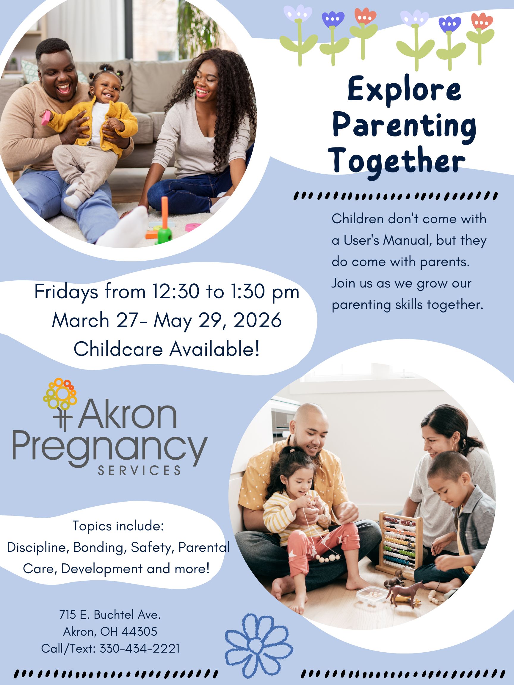 12:30 - 1:30 p.m. Explore Parenting Together - Grow your parenting skills! Childcare provided for children aged 2 and under.
