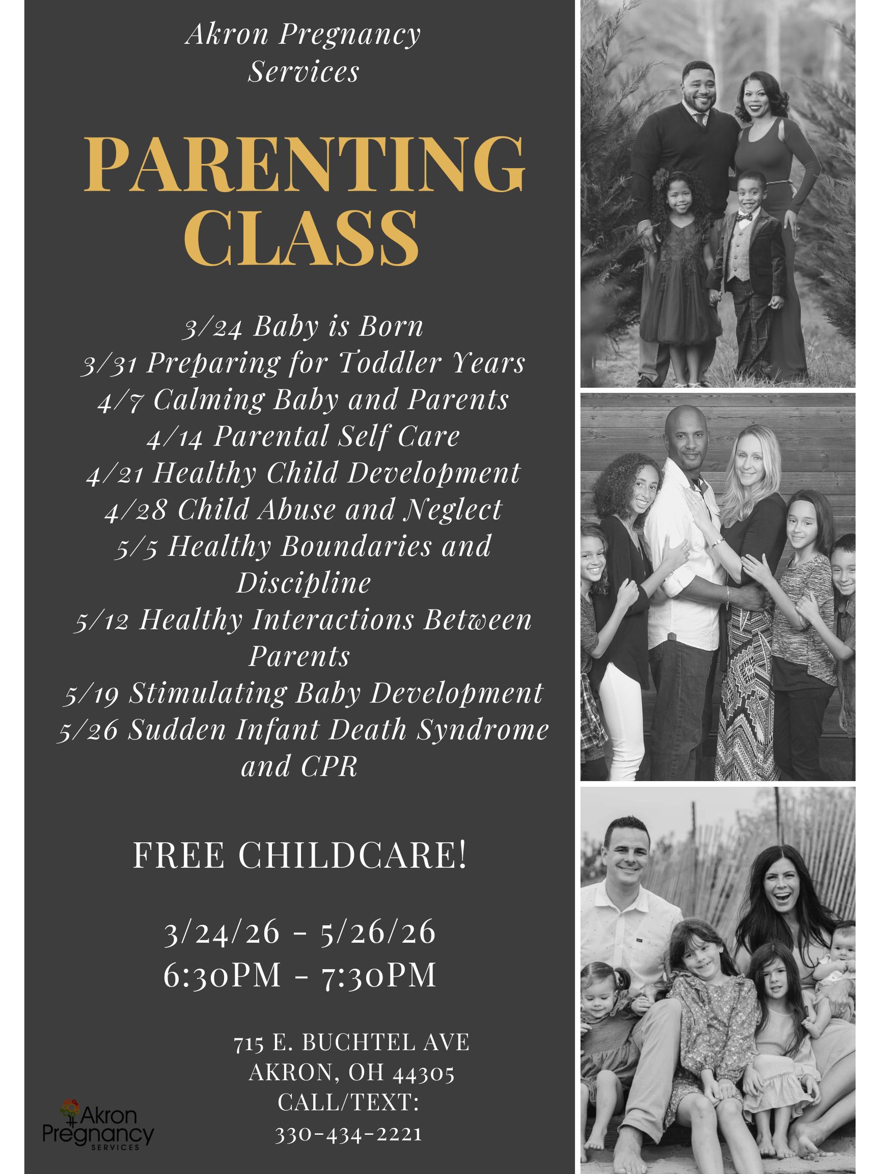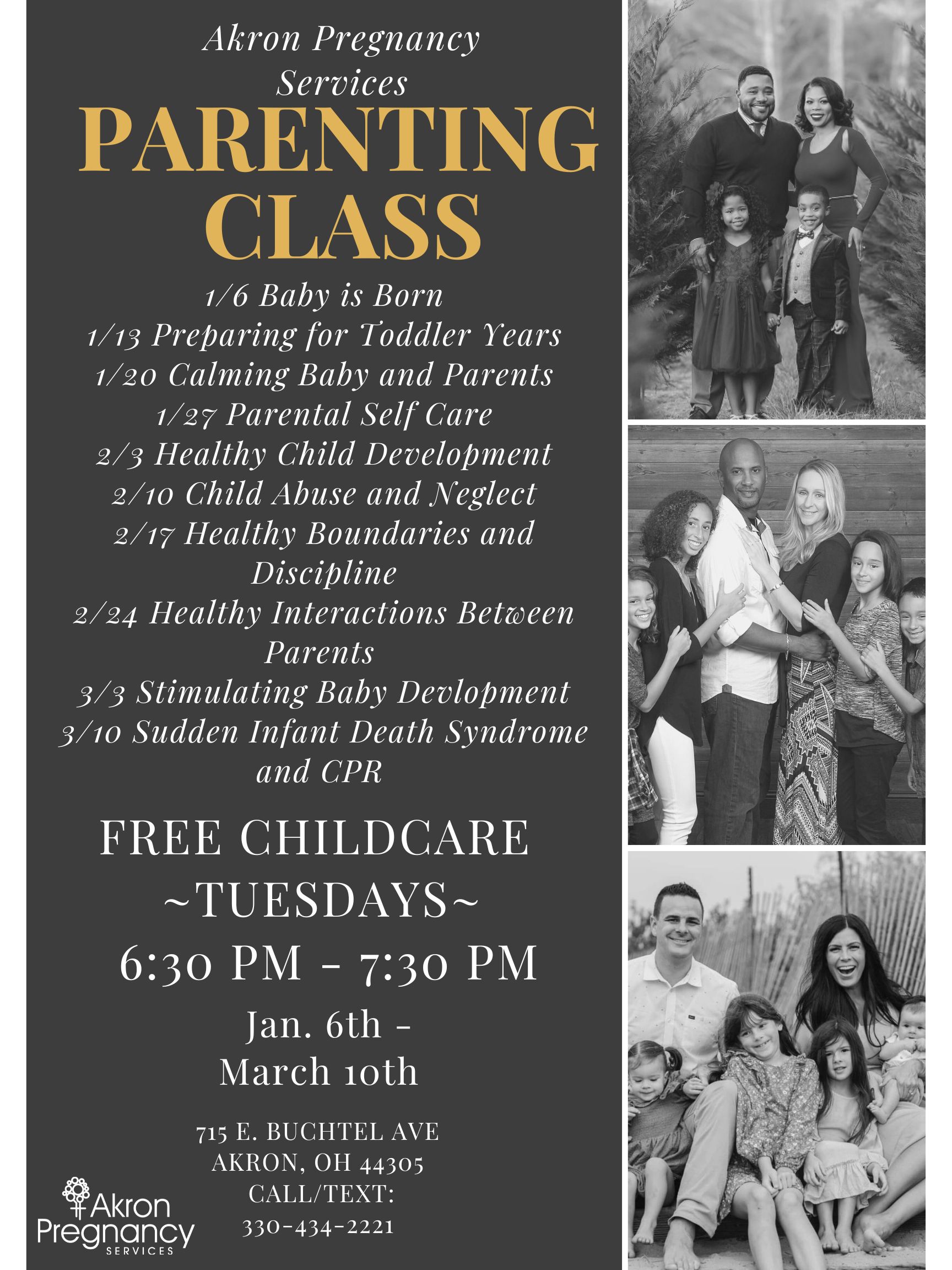 6:30 - 7:30 p.m. Parenting Class — educates expecting and parenting moms and dads, focusing on parenting children under 2 years of age.