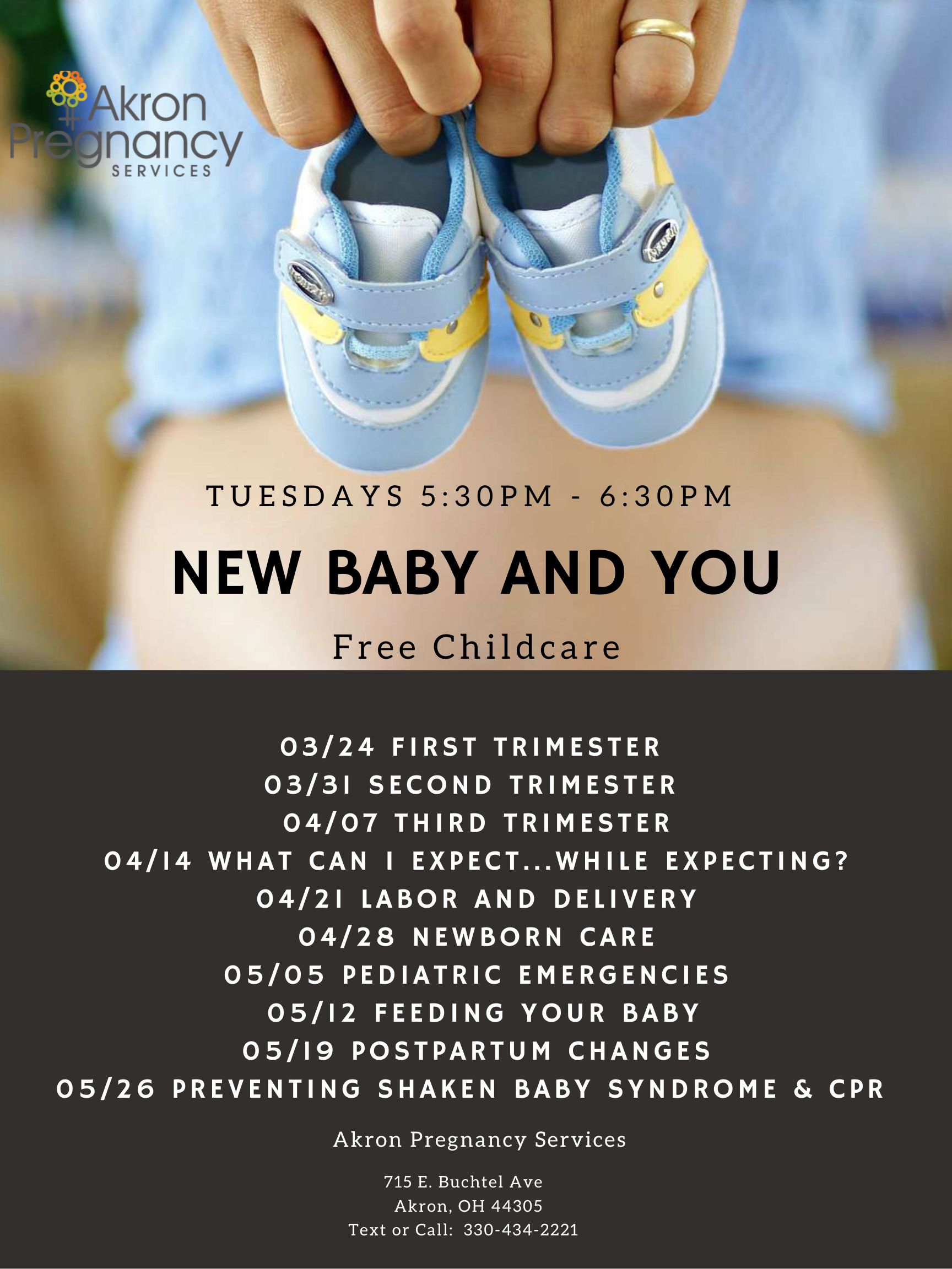 5:30 - 6:30 p.m. New Baby & You — prepares expecting parents and supporters with necessary information for a healthy pregnancy, childbirth and becoming a confident mom or dad.